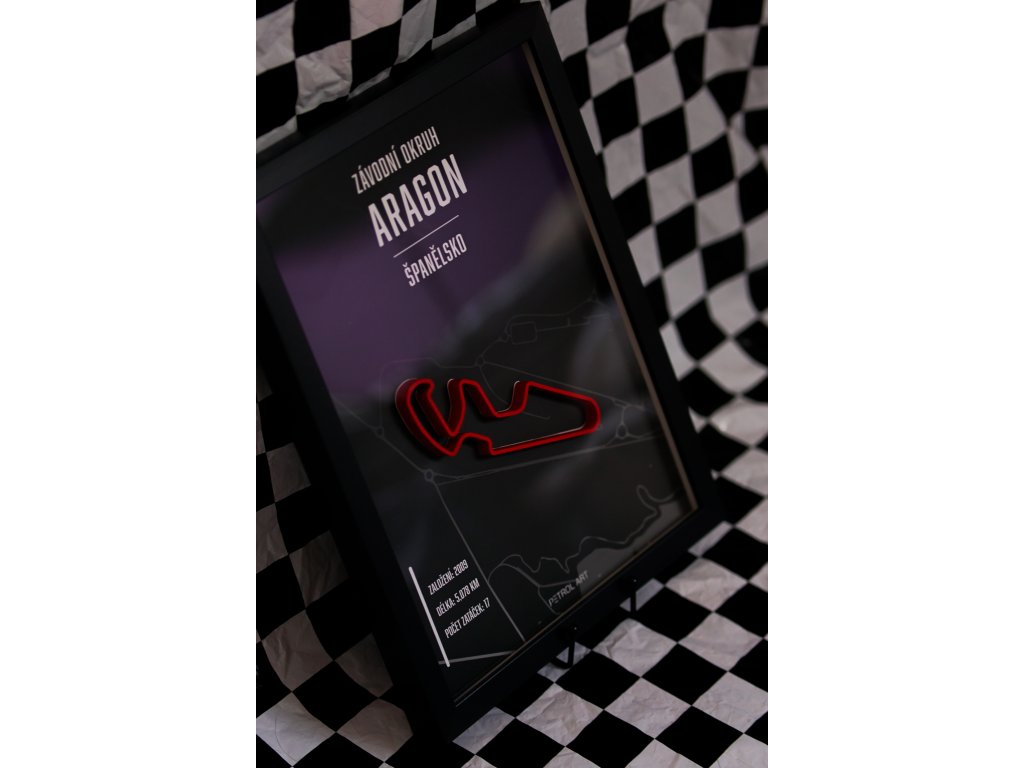 Vstupte do světa motorsportu s naším unikátním 3D obrazem závodního okruhu Aragon. Tento precizně zpracovaný kousek zachycuje detaily tratě s 3D siluetou. Oživí váš interiér a přinese vám pocit závodní atmosféry přímo domů. Na obrazu se nachází základní údaje o okruhu jako rok založení, délka tratě a počet zatáček.