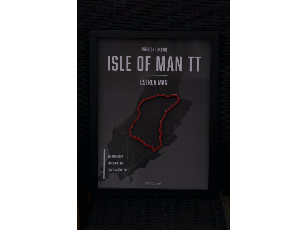 Vstupte do světa motorsportu s naším unikátním 3D obrazem přírodního okruhu Isle of Man TT. Tento precizně zpracovaný kousek zachycuje detaily tratě s 3D siluetou. Oživí váš interiér a přinese vám pocit závodní atmosféry přímo domů. Na obrazu se nachází základní údaje o okruhu jako rok založení, délka tratě a počet zatáček.