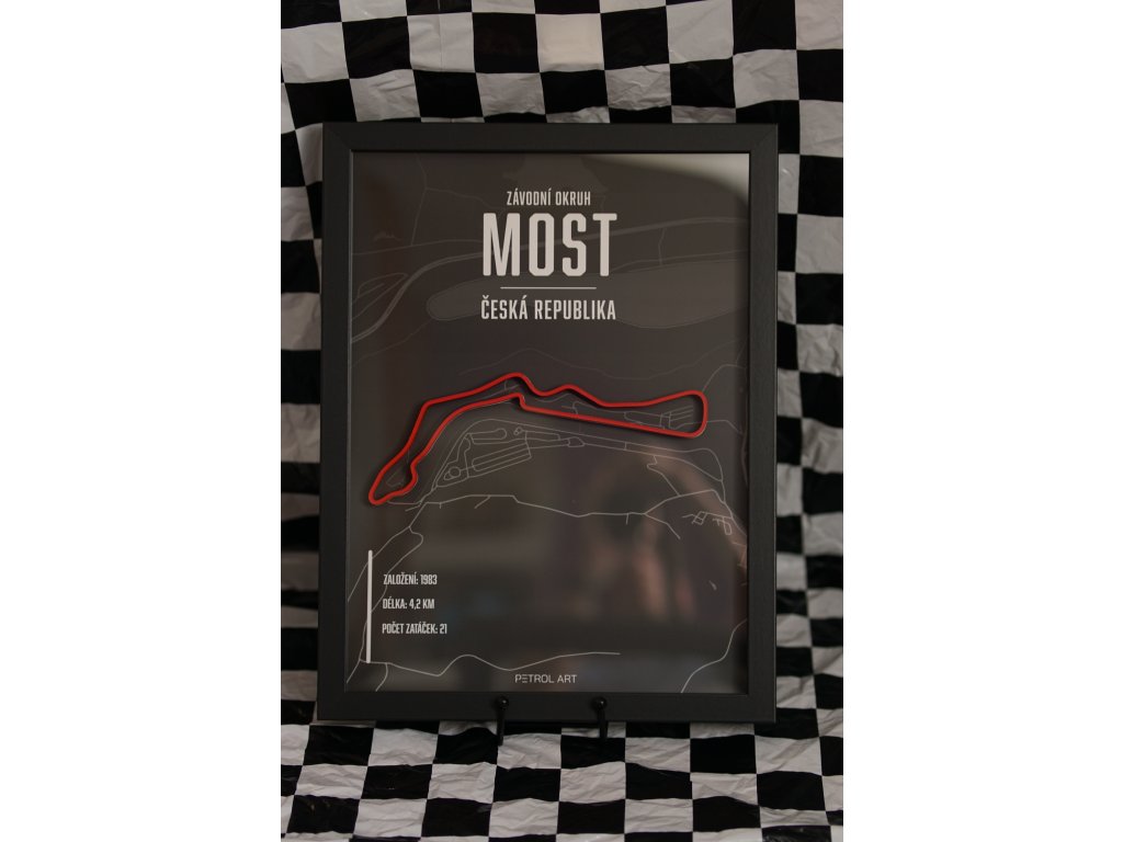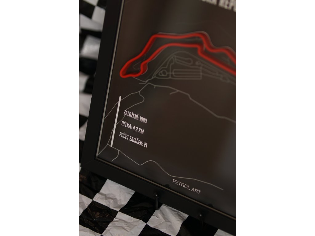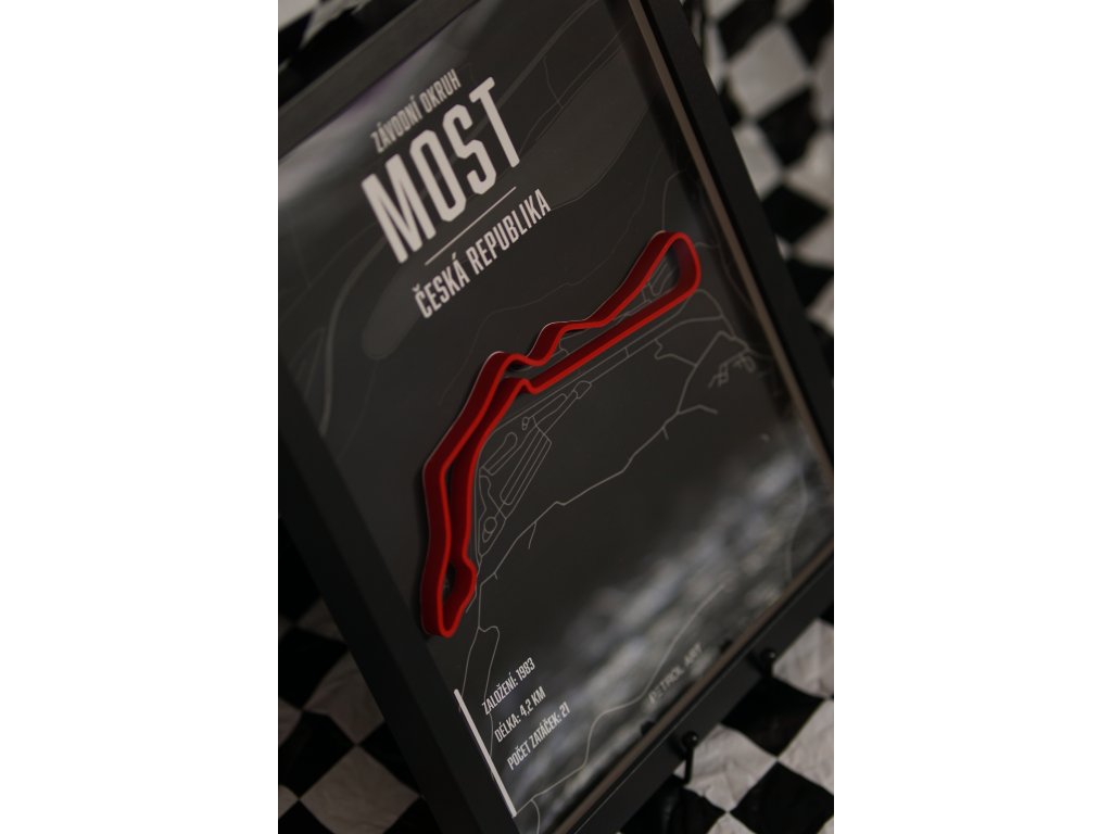 Vstupte do světa motorsportu s naším unikátním 3D obrazem závodního okruhu Most. Tento precizně zpracovaný kousek zachycuje detaily tratě s 3D siluetou. Oživí váš interiér a přinese vám pocit závodní atmosféry přímo domů. Na obrazu se nachází základní údaje o okruhu jako rok založení, délka tratě a počet zatáček.