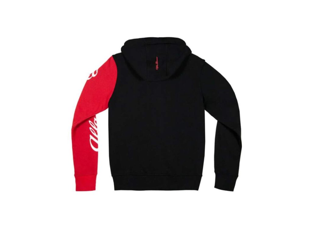 Mikina s kapucí Alfa Romeo z oficiální kolekce. Pohodlná na nošení, zahřeje, boční kapsy. Mikina Alfa Romeo černém provedení doplněná červeným prvkem a logem Alfa Romeo.