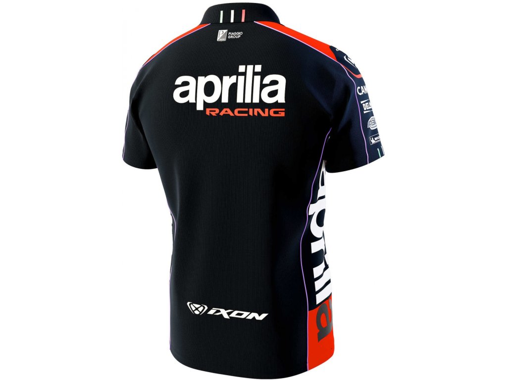 Nová týmová polokošile Aprilia Racing MotoGP. Polokošile nošená piloty a členy týmu v sezóně MotoGP. Týmová polokošile Aprilia MotoGP v krásném provedení. Pohodlná na nošení, týmová loga.
