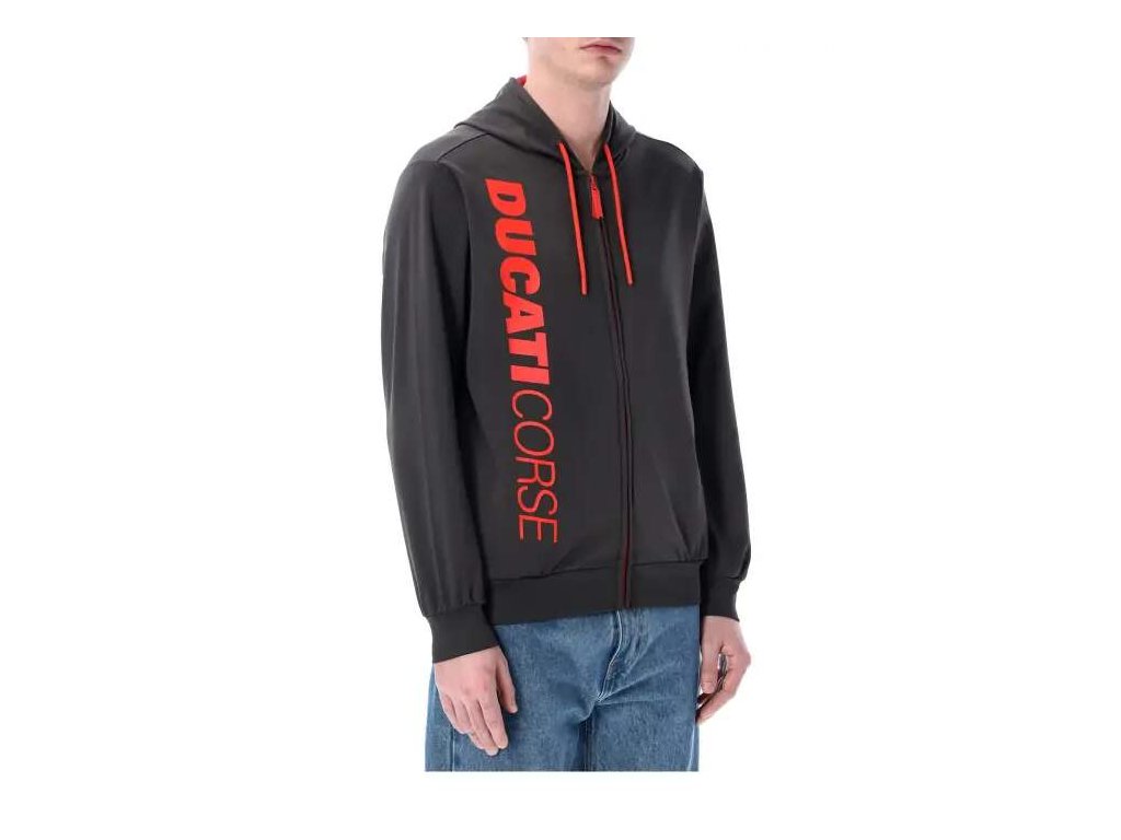 Mikina s kapucí Ducati Corse - MotoGP doplněná velkým nápisem Ducati Corse. Kapuce, boční kapsy, moderní provedení.