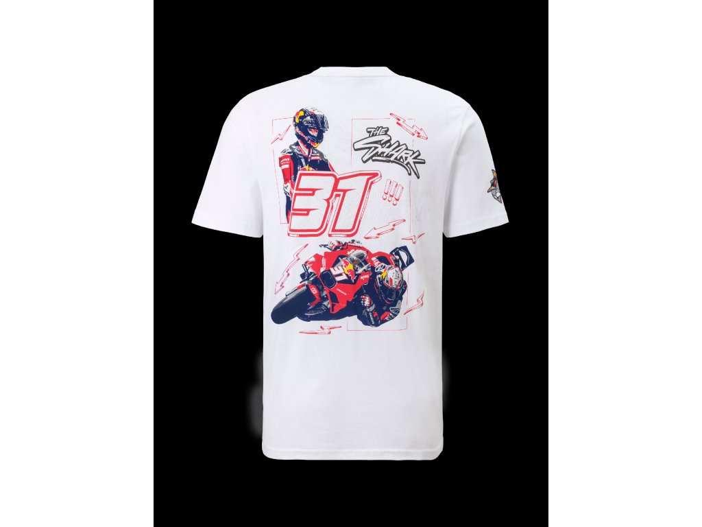 Nové fanouškovské tričko Pedro Acosta - Red Bull GasGas z oficiální kolekce. Bílé tričko Red Bull GasGas doplněné logem týmu MotoGP a kresbou Pedro Acosta #31. Týmová loga, krásné barvy, pohodlné na nošení.