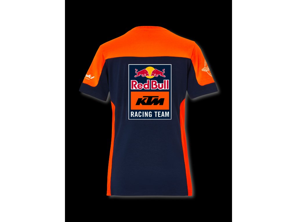 Nové dámské týmové tričko KTM Red Bull Racing z oficiální kolekce. Krásné zpracování, týmová loga, funkční materiál. Oficiální dámské tričko nošené jezdci a členy týmu KTM Red Bull Racing.