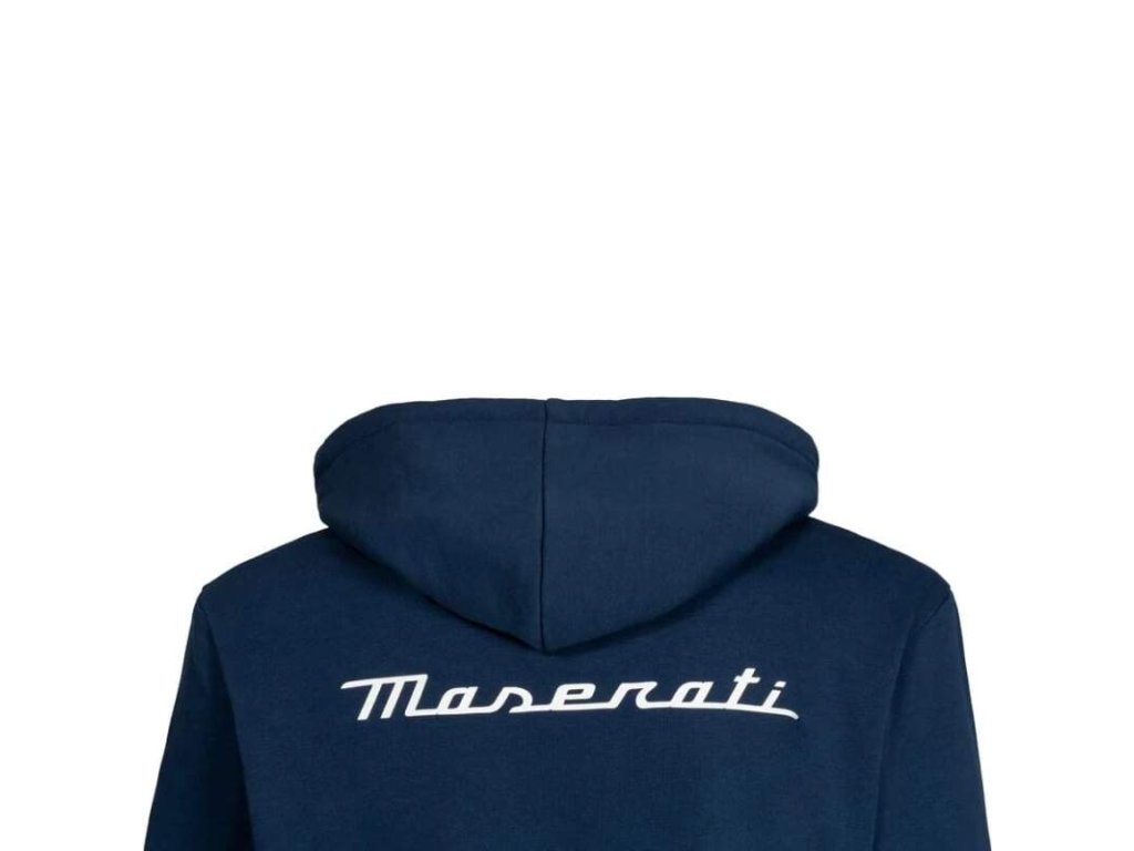 Luxusní pánská mikina Maserati v tmavě modrém provedení. Mikina Maserati s decentním 3D logem trojzubce na hrudi a nápisem Maserati na zadní straně. Kapuce Boční kapsy Zahřeje