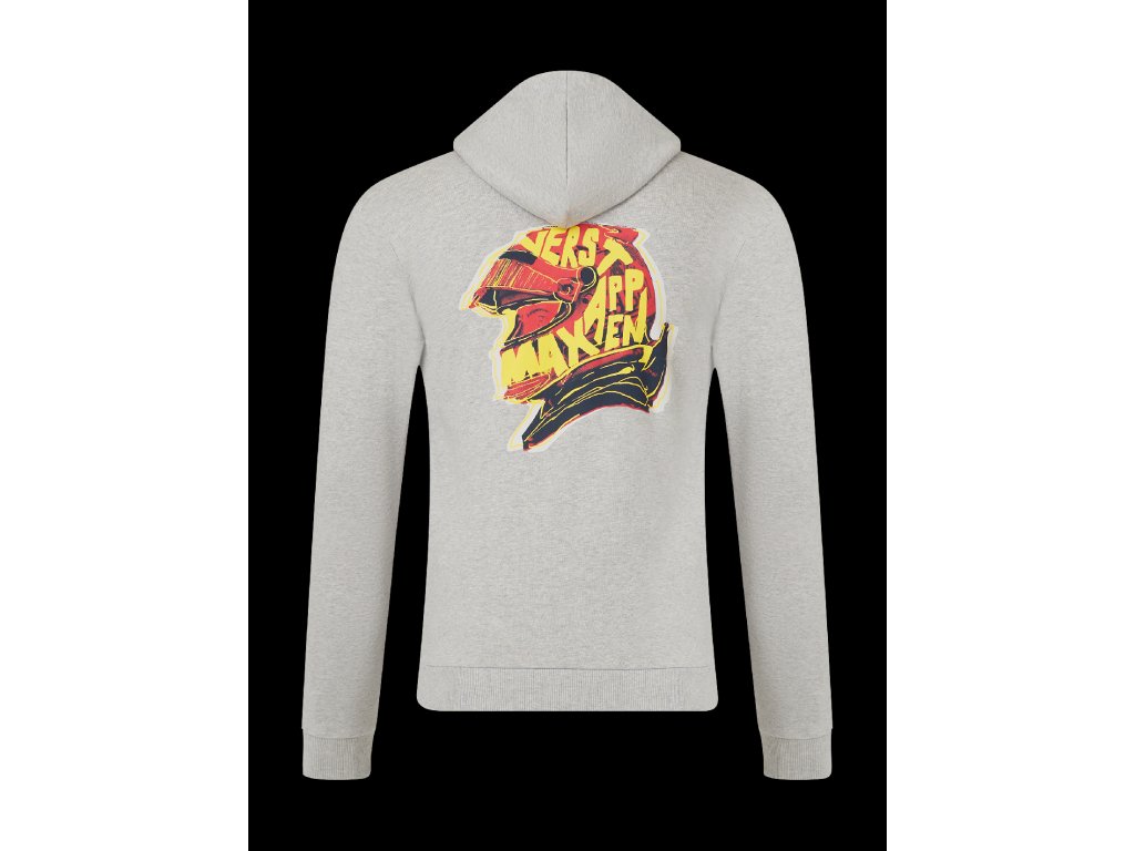 Šedá mikina na zip Max Verstappen - Red Bull Racing F1 doplněná motivem přilby Maxe Verstappena, nápisem MV1 a logem Oracle Red Bull Racing. Šedá mikina Max Verstappen z oficiální kolekce 2024. Pohodlná na nošení, krásné barvy.