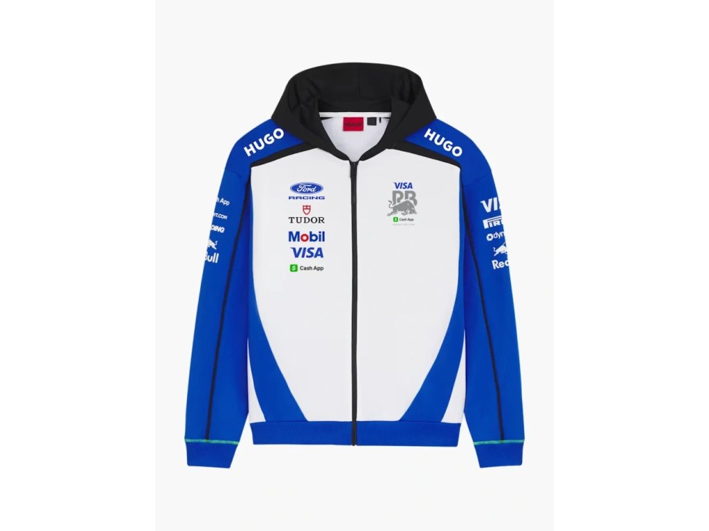 Zcela nová mikina na zip týmu Formule 1 Visa Cash App RB s prvky Ford Racing. Bílá barva doplněná luxusním potiskem Red Bull a logy sponzorů.
