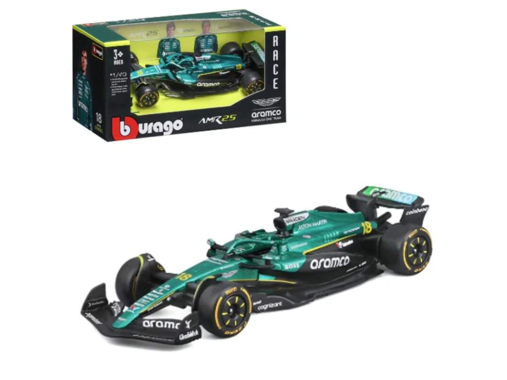 Model Aston Martin F1 AMR25 team Aramco Cognizant Lance Stroll v barvách pro sezónu 2025. Detailní zpracování, měřítko 1:43. Aston Martin BBurago 2025. Novinka modelu nové éry Formule 1.