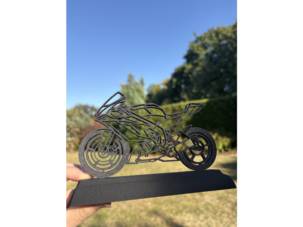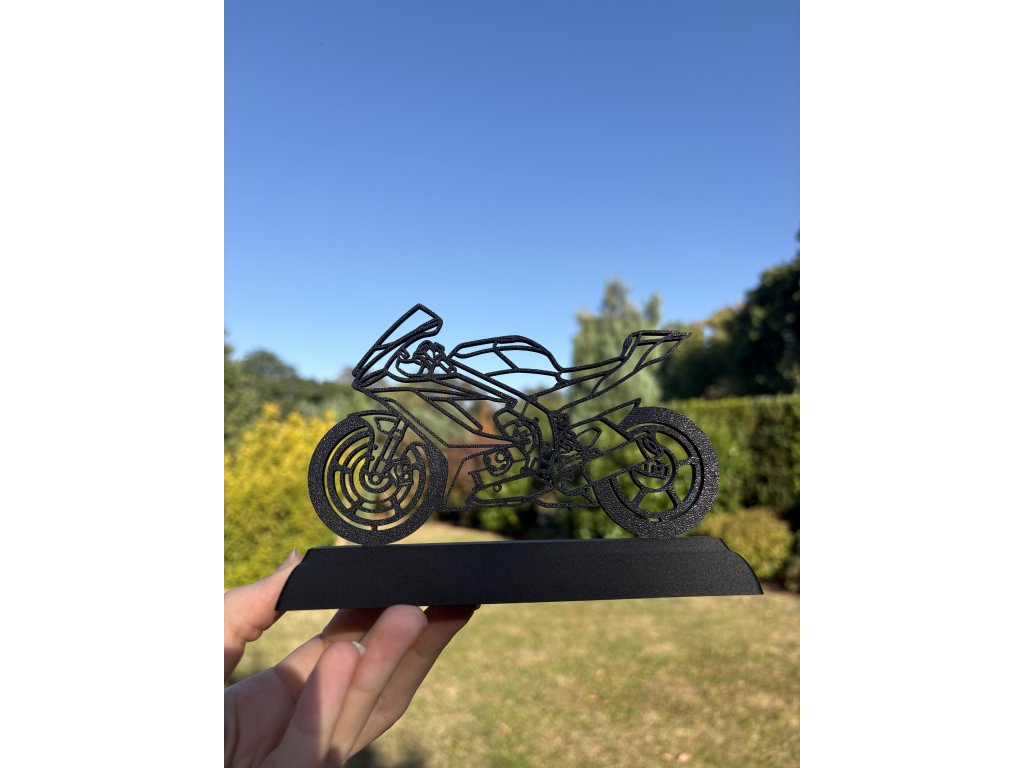 Jednoduchý doplněk pro každého petrolheada. Silueta motorky R6 ve stojánku je ideální jako dekorace na pracovní stůl, do garáže nebo do pokoje, kde dáváte najevo, čím žijete.