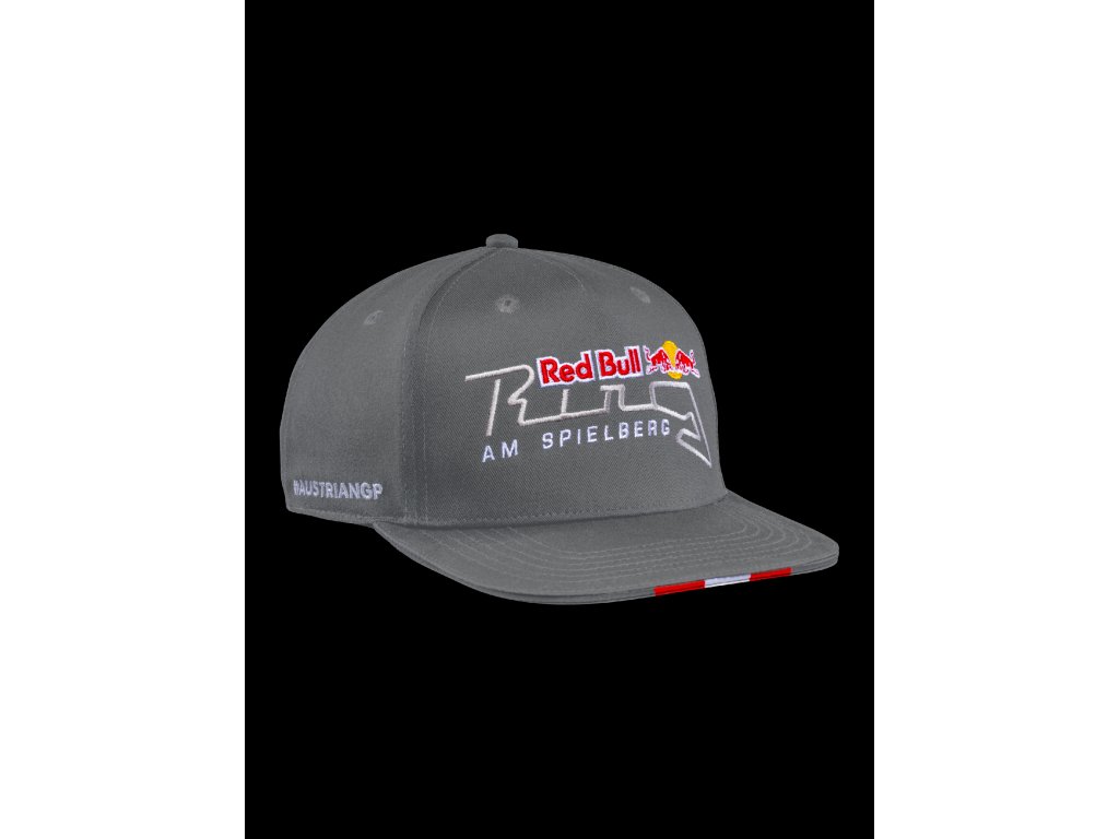 Kšiltovka Red Bull Ring k příležitosti VC Rakouska s rovným kšiltem. Šedá kšiltovka Red Bull doplněná vyšitým logem Red Bull Ring. Nastavitelný pásek.