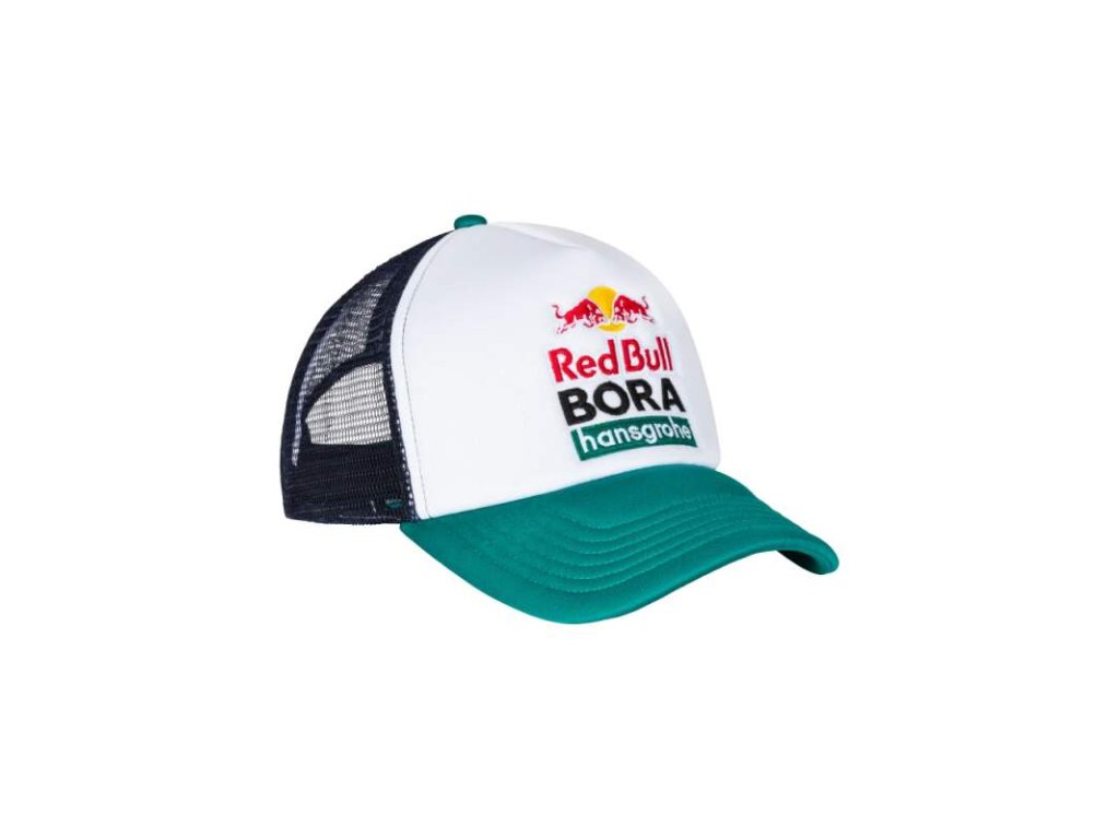 Fanouškovská kšiltovka cyklistického týmu Red Bull Bora Hansgrohe. Vzdušná kšiltovka Red Bull Bora doplněná vyšitým logem na přední straně.