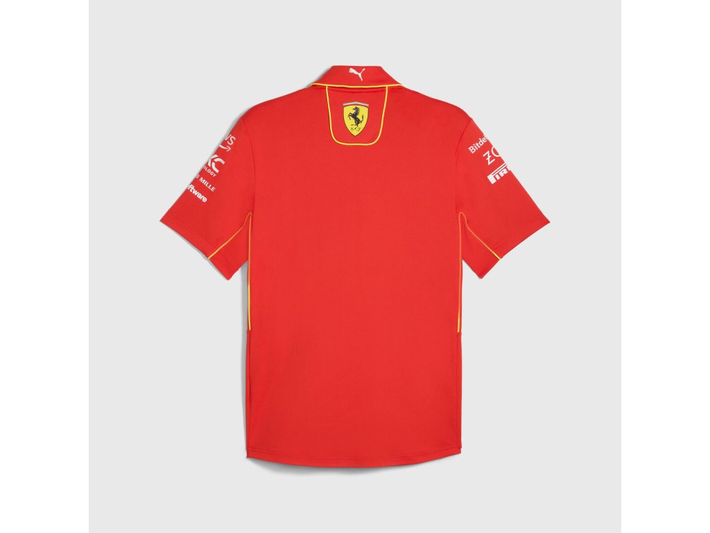 Týmová polokošile Scuderia Ferrari F1 ve verzi PRO ( specifikace odpovídají oděvům nošených jezdci a členy týmu F1 v průběhu sezóny ). Červená polokošile Ferrari doplněná logy sponzorů od výrobce Puma. Pohodlná na nošení, krásné barvy.