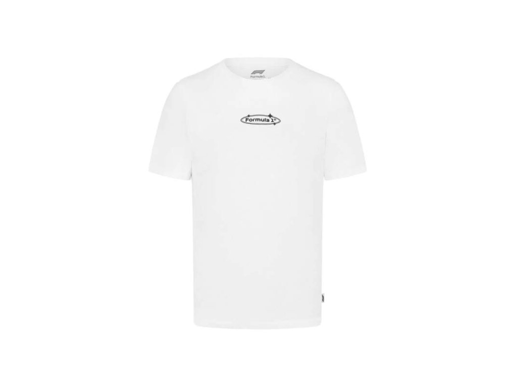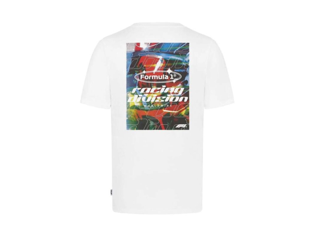 Bílé tričko Formule 1 s velkým potiskem Racing Division. Bavlna, pohodlné na nošení.