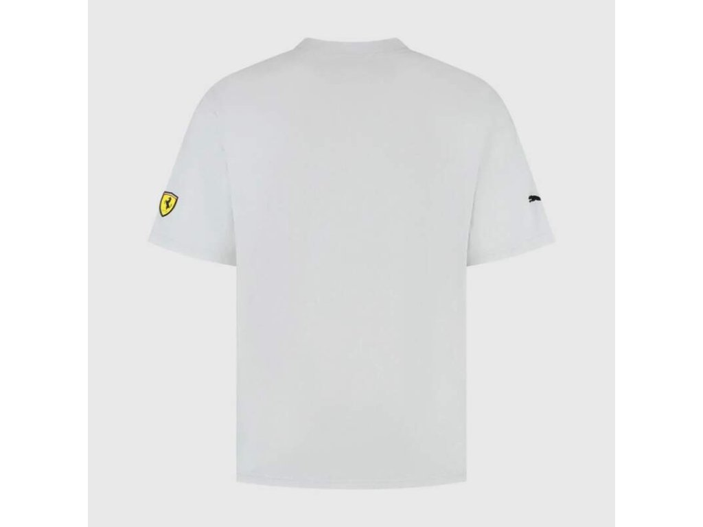 Šedé tričko Scuderia Ferrari doplněné potiskem monopostů Ferrari na přední straně. Rukáv zdobí 3D logo Scuderia Ferrari a vyšité logo Puma. Pohodlné na nošení, washed materiál.